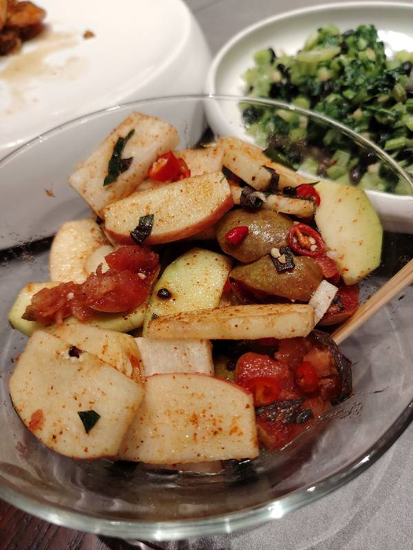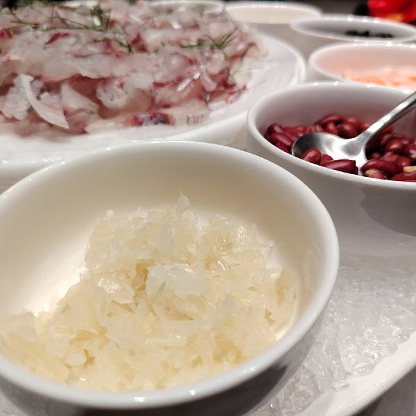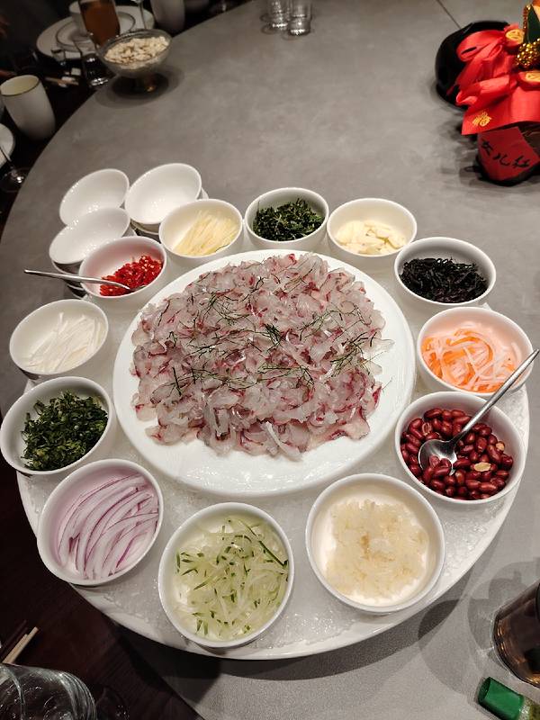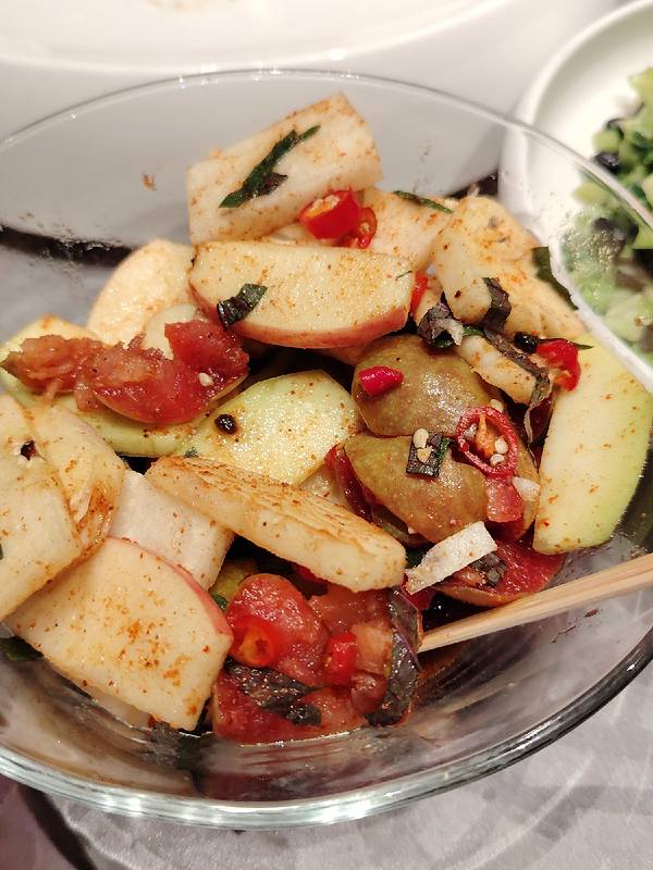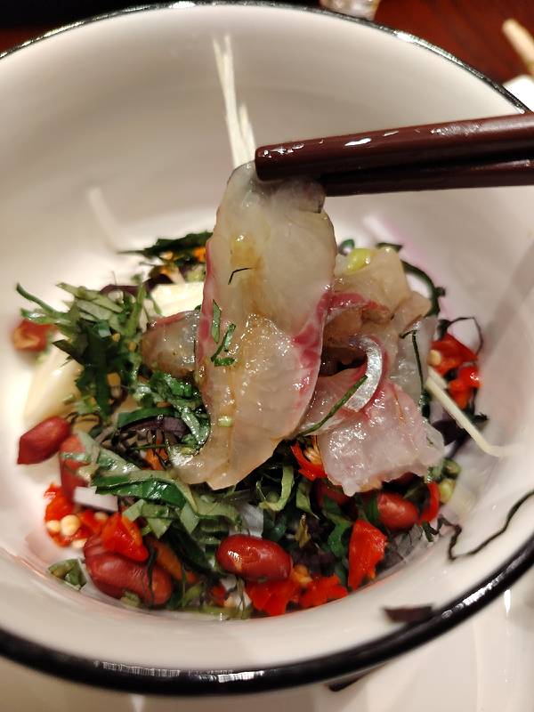 到南宁丫丫厨娘柠檬鸭(喜荟天地店)吃饭,被爽口美味的横县鱼生和酸辣脆爽的南宁酸嘢深深打动。 其实我是没想到,丫丫厨娘柠檬鸭也有横县鱼生,而且摆盘漂亮,吃起来爽口美味。 他家还有加了紫苏的南宁酸嘢,里面有李子、芒果、苹果等,比街上的还好吃,真是吃到停不下来。