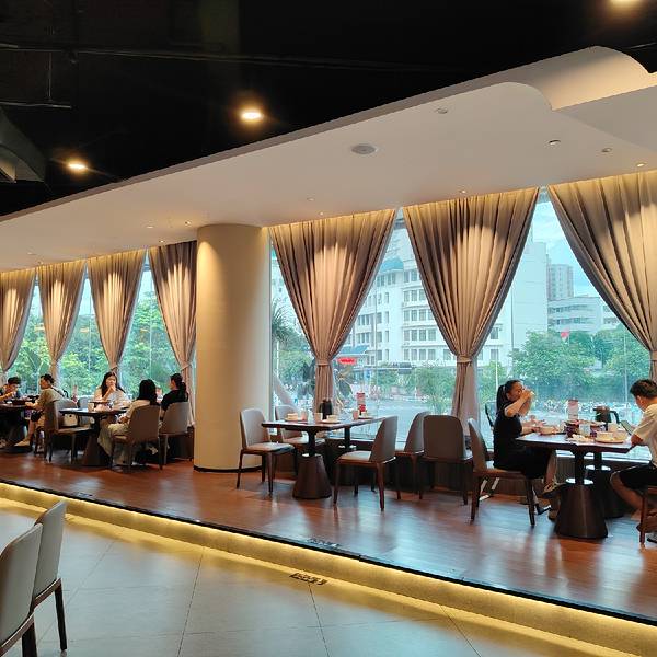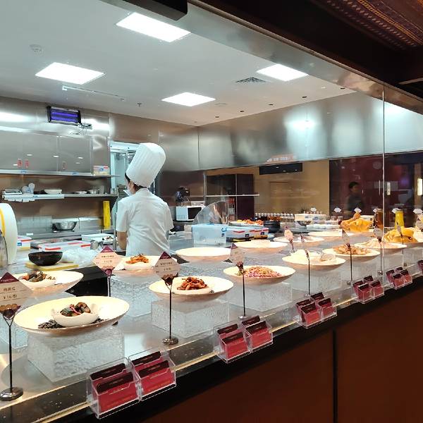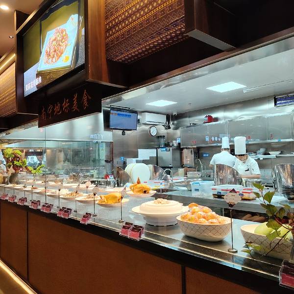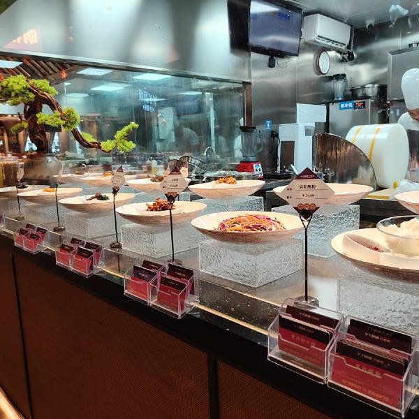 丫丫厨娘·柠檬鸭(喜荟天地店)有很大的大厅,坐在沿街落地玻璃墙的位置可以看外面的街景。厨房也是用玻璃围起来的,透明、干净。要卖的菜品也全部把食材摆在碟子里,一目了然,让食客吃得放心。