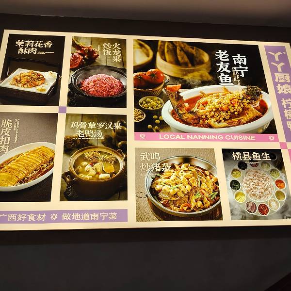 原来,丫丫厨娘(喜荟天地店)除了柠檬鸭、横县鱼生还有那么多各地名菜:南宁老友鱼、白切安铺鸡、良庆脆皮扣、呗侬虾、古法焖羊蹄、小海鲜蟹煲、青柠拌牛腱、白玉丝瓜、黑豆炒芥菜等等,真是到一家,吃十家。广...