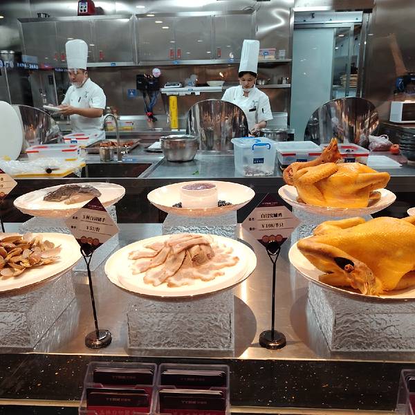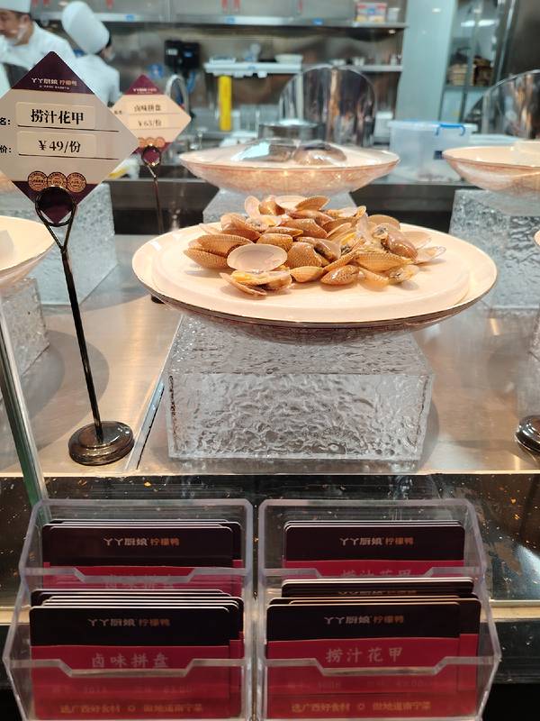 很少见到餐馆把所有要卖的菜摆出来,旁边还有卡片写明了价格,都是新鲜的菜,让食客看到菜的份量和质量,丫丫厨娘柠檬鸭(喜荟天地店)确实很有诚意。