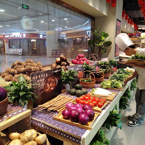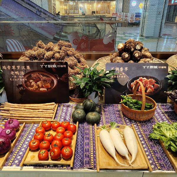 各种各样的生态蔬菜就摆在食客的面前,你都认识吗? 来到丫丫厨娘柠檬鸭(喜荟天地店),看着这些蔬菜来点,点完,厨师就从这里拿菜去做了。