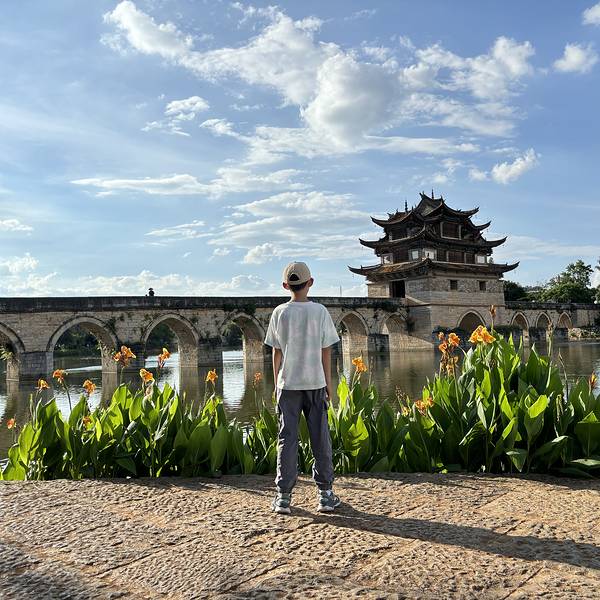 中午回宾馆休息一下,下午5点出发建水小火车的自驾路线(双龙桥站——乡会桥站——团山民居站)双龙桥站的十七孔桥摆好pose让我拍照