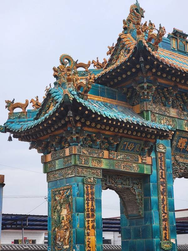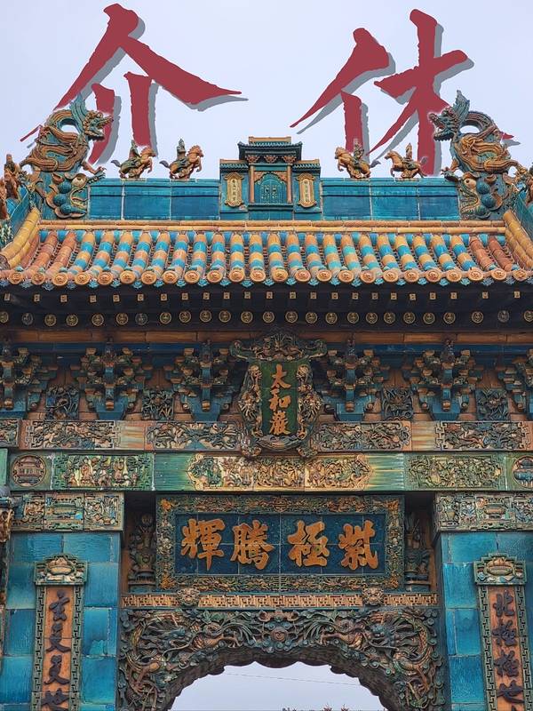 介休太和岩|我心目中的最美琉璃牌坊🌈 |||牌坊,又名牌楼,是我国特有的兼具装饰性和礼仪性的建筑,多见于寺庙或祠堂的入口之前。琉璃牌坊,由于其奢华的用料及高大的规格,更是牌坊中的豪门贵族和稀世珍品。在我国,现存的琉璃牌坊(古物)仅有13座:北京10座,河北承德2座,山西介休1座。介休太和岩琉璃牌坊,作为现存唯一的四柱三间琉璃牌楼,虽是最年轻的一座,但却无疑是看到的所有琉璃牌坊中最精美、最流光溢彩的一座。 📍位置:山西省介休市城区东北20km的北辛武村,一户人家院内 🎫门票:作为国保第六批,和山西的众多古建一样,由“守庙人”看护。网上众说纷纭的“看牌坊的奶奶收钱才给开铁门”“拒之门外”等在我这里都没有发生。去的当天奶奶家院子在装修维护,打了声招呼直接让我进门参观了,人也很热情,可能是我长得比较像她帅气的孙子吧 🚕交通:从介休市区的祆神楼有🚎公交202路可以直达北辛武村,全程1h。自驾或打车也可以选择更灵活的路线:由于北辛武村几乎在介休和平遥连线的中点上,可以先从介休打车17km去北辛武村(30min),看完牌坊后(这段让师傅打表等你)再往东北驾驶15km(30min)可到达平遥古城外的彩塑天堂双林寺。打车全程110r左右 ✅️关于太和岩牌坊 清光绪二十三年(1897)造,原为真武庙前牌坊,今庙已无存,仅余此琉璃牌楼。🌈牌楼四柱础为石雕束腰须弥式,其上坊柱、对联、阑额、牌匾、斗拱、椽飞、瓦顶、脊饰、脊刹等都是琉璃艺术构件镶砌而成的,通身包砌之琉璃图案无一雷同,共耗资12万两白银,体现了琉璃之乡介休登峰造极的琉璃制作工艺。牌坊旨在表现道教主题,正面主额书“紫极腾飞”,背面书“天枢真宰”,另有琉璃匾额和楹联无数。琉璃斗拱繁复细密,层层叠起,拖举起巨大的琉璃出檐,使得整座牌楼仿佛要腾飞一般。而正脊上的琉璃脊饰,仿佛在静态的躯壳中凝固着流动的色彩和乐章,抒发出无限的张力。