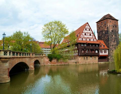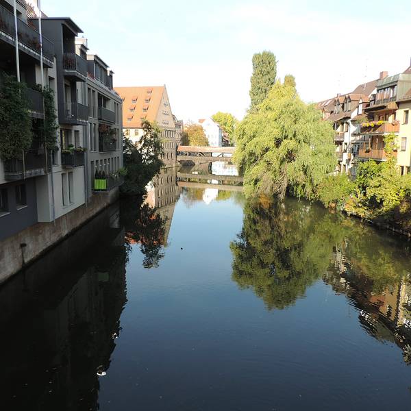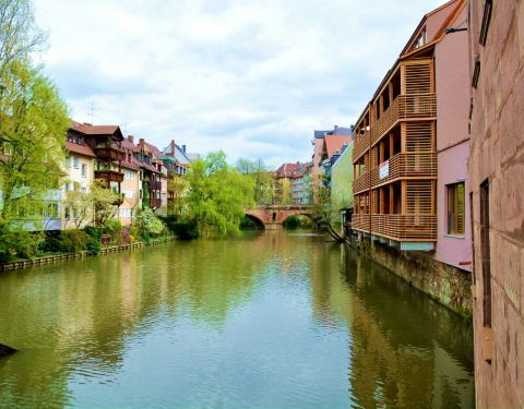 从纽伦堡火车站前往主集市广场或是皇帝堡,就一定会跨过佩格尼茨河。佩格尼茨河的名气并不大,但因为它的存在,给纽伦堡厚重的中世纪风貌添加了一份柔情,河水倒映着河中小岛上的老房子,木质廊桥蜿蜒地跨过河面...