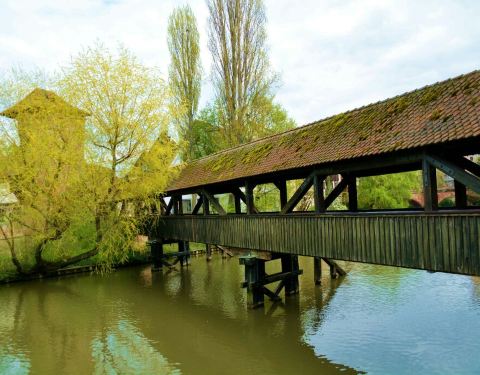 佩格尼茨河 是紐倫堡老城區裏最美的景點 站在橋中央 可見河中小岛上的老房子 倒映在静静的水面上 而再沿着河岸向西 又可看见另一座木质廊桥 這裏 是小憩的好地方 找個小咖啡馆 度過一段悠閒的時光~