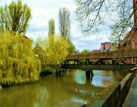 是紐倫堡老城區裏最美的景點 站在橋中央 可見河中小岛上的老房子 倒映在静静的水面上 而再沿着河岸向西佩格尼茨河 是紐倫堡老城區裏最美的景點 站在橋中央 可見河中小岛上的老房子 倒映在静静的水面上 而再沿着河岸向西 又可看见另一座木质廊桥 這裏 是小憩的好地方 找個小咖啡馆 度過一段悠閒的時光~