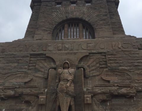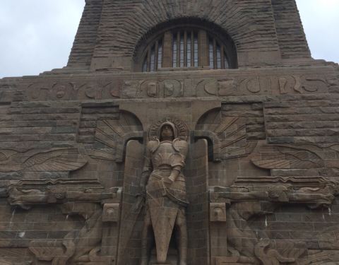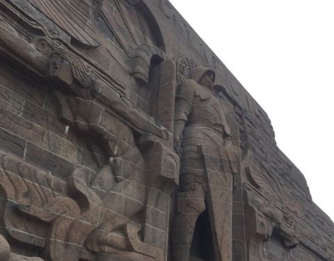 【景色】爬上来周围景色不错 【趣味】很有趣的雕塑这座纪念碑蛮大的,这个建筑蛮高的,是一个很独立的单体纪念碑,需要爬上很多的楼梯才能上来,这里也是德国的民族战争嗯纪念的一个建筑。 【景色】爬上来周围景色不错 【趣味】很有趣的雕塑