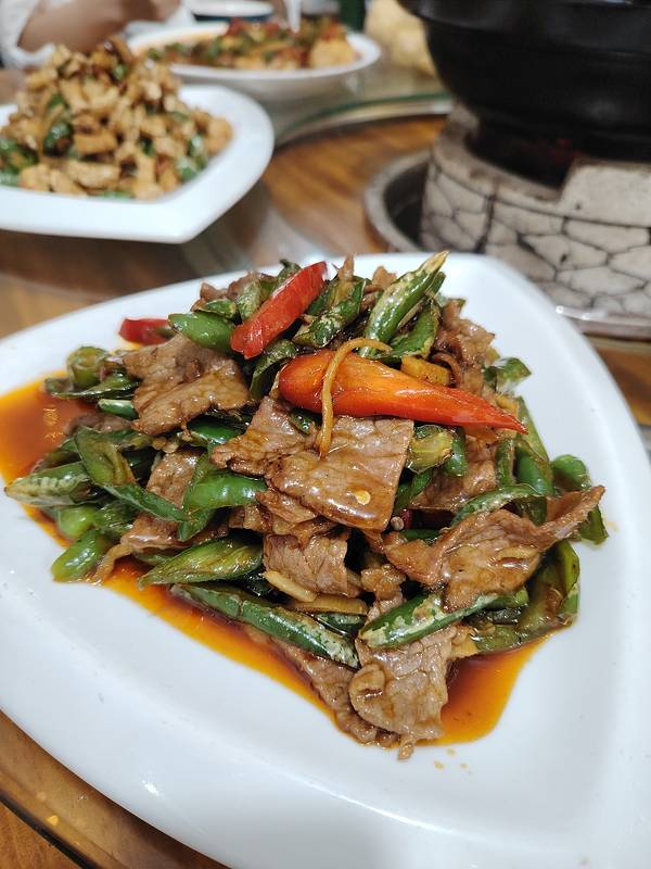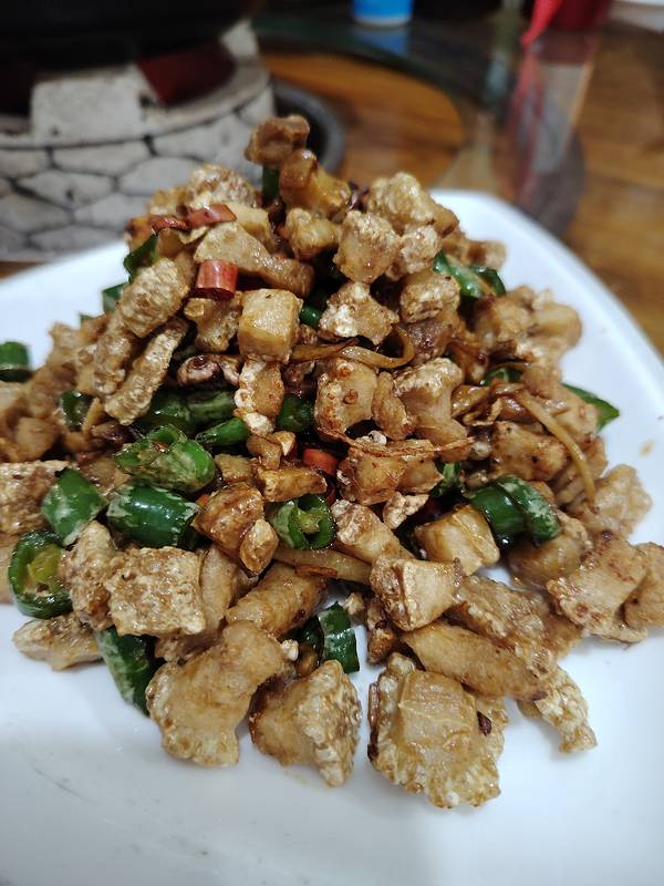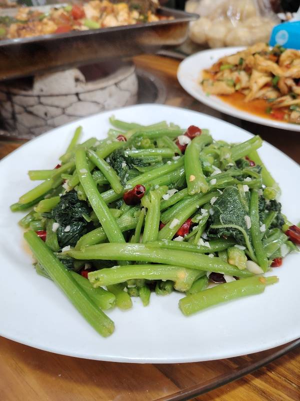 南宁西江路上的河池人家的菜做得不错,很农家菜的口感,份量也大,除了我们从东兰农家豆腐店带去的各种豆制品做的菜,那个炸猪油渣脆夸夸的,小炒牛肉和炒瓜苗都不错,都加了辣椒,很河池的口感。