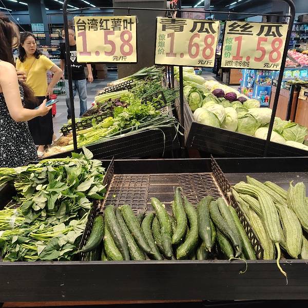 南宁超市里的菜价也太便宜了。 新鲜蔬菜,健康生活。昨晚7点半,我到南宁优之道超市逛,看到茄瓜0.99元一斤,韭菜1.28元一斤,生菜、红薯叶、丝瓜都是每斤1.58元,而且品相不错,品质保证哦,超市里卖这种价格,真是太便宜了。