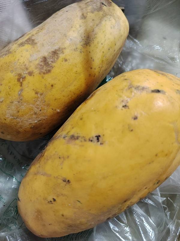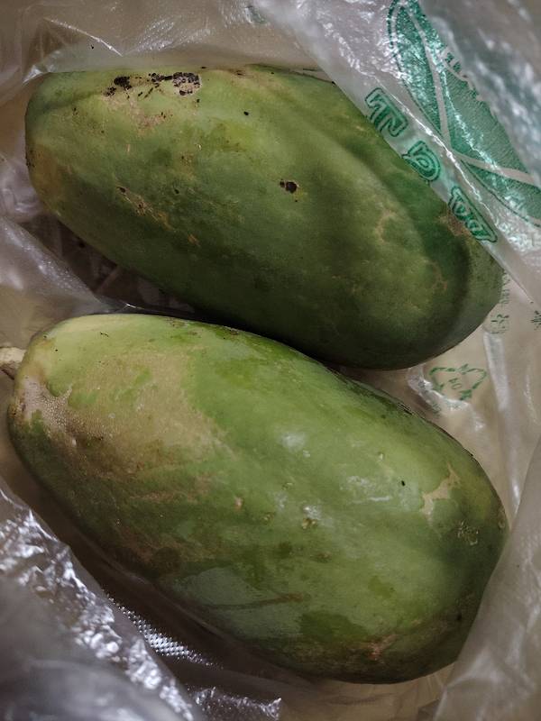 这款水果木瓜真的绝了! 朋友的亲戚从龙州带来了一些水果木瓜,说是平时他们吃不了多少,拿来喂鸡的。 郁闷啊,我们都喜欢吃木瓜,早知道多运上来啊。这次给了我两个,拿来的时候还是绿色的,放了几天,就变黄了,熟得很快,那就直接吃。一口咬下去,清甜多汁,果肉软糯到像在吃冰淇淋!完全不会涩口,甜度刚刚好。(偷偷说:冷藏后更绝!)