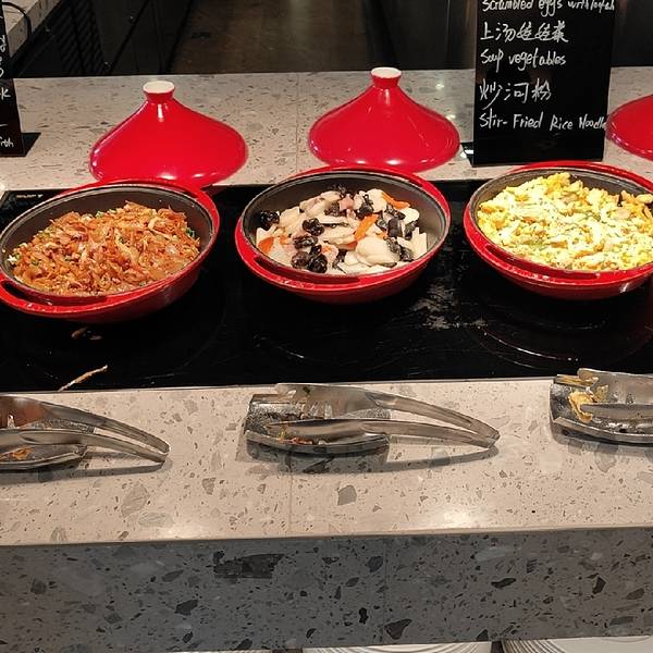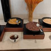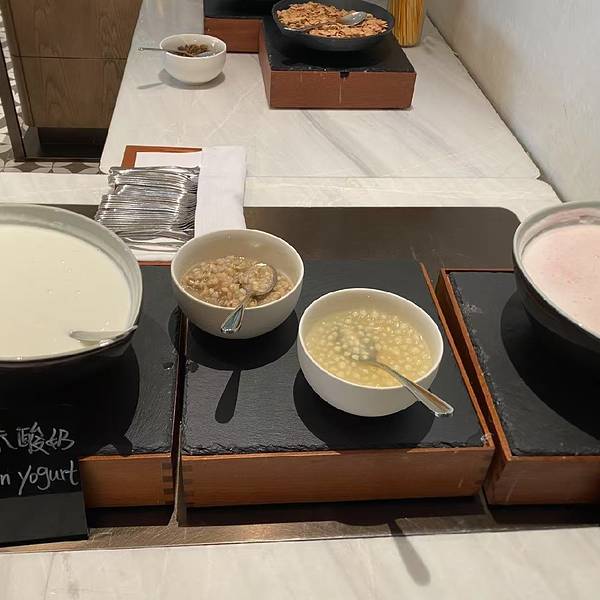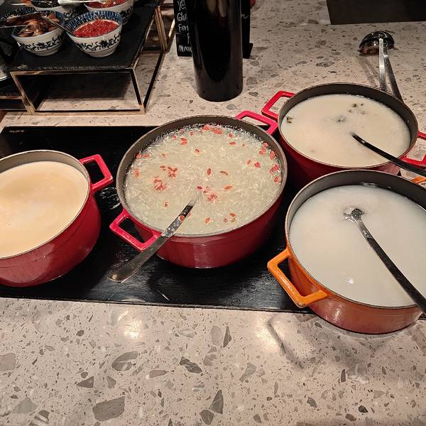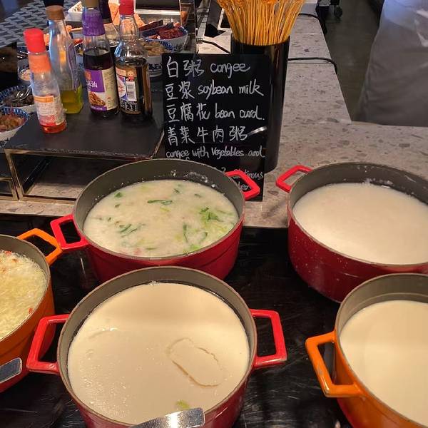 粥的种类蛮多的,有海鲜粥,皮蛋瘦肉粥,白粥,豆浆,豆花,都很有营养美味,搭配合理,冷菜区域摆盘精致,颜色搭配合理,感谢王铁热情洋溢的服务给好评!