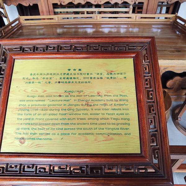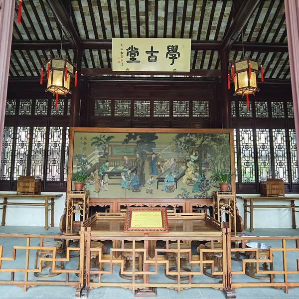 《学古堂》嘉应年间江苏巡抚汪志伊建正谊书院时曾为讲堂,后改为四面厅形式,取名“学古堂”