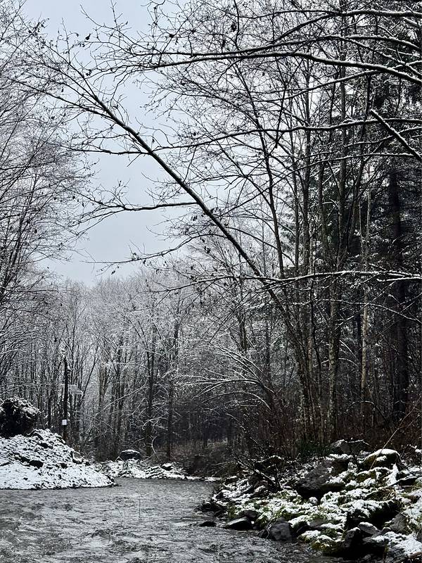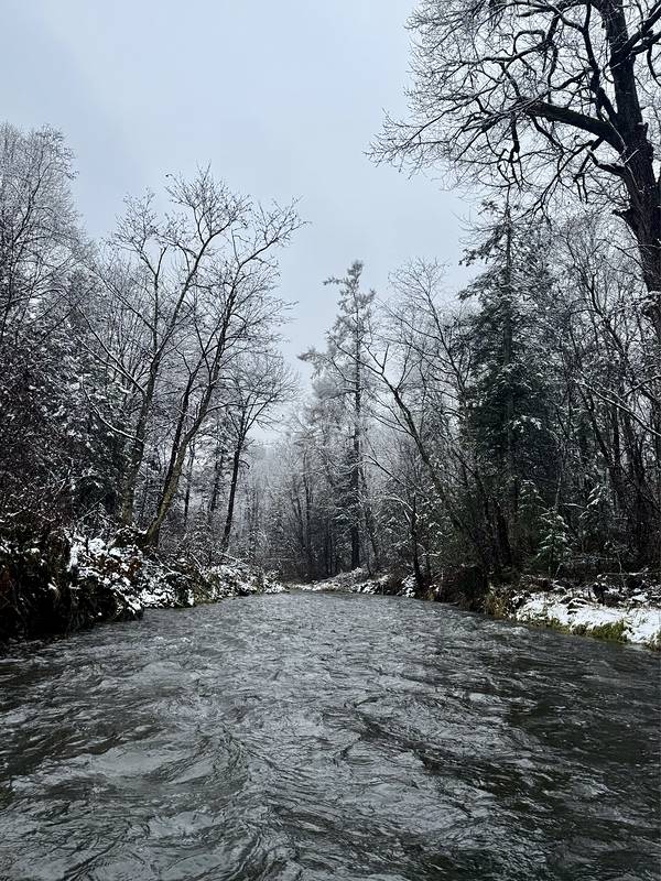 因为下雪早上临时决定再去漂流,感受一下森林雪景。临时找了小沙河漂流,这个漂流是2023年新开的,和天池水差不多时间大概40分钟。 又联系了昨天的出租车师傅,小沙河漂流包车接送88一个人,感觉还挺值的。 可能是淡季加上下雪的缘故,漂流都没什么人,我和朋友俩人包场了。不过现在想想有些后怕的是当时手机没有信号==下过雪的森林格外的安静,漂流全程只能听见我俩的声音,其他所有声音仿佛都被大雪掩盖住了。 这个漂流和天池水漂流相比激烈了不少,很多地方水流都很急,也可能这是为什么今天必须穿上救生衣的原因。