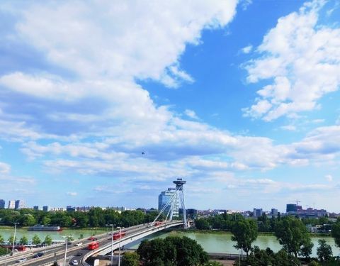 这个所谓的UFO观景台是位于布拉迪斯拉发新大桥上的一座观景塔,这座大桥横跨多瑙河,桥梁本身谈不上是一座宏伟的建筑,但外形算是比较有特色。