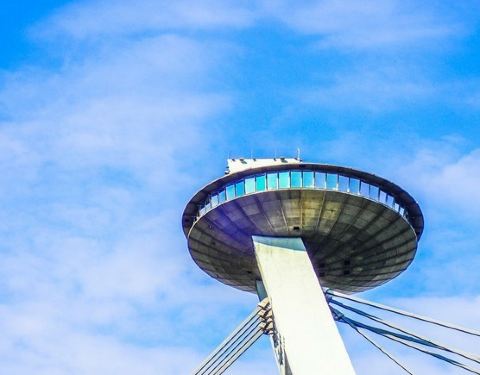 UFO观景台建在SNP大桥上,横跨多瑙河。与城中其他各式的古建筑不同,UFO观景台是一个超现代化的建筑,有未来之感,也是名字的来源,远远望过去很像西雅图太空针塔。观景台高95米,从底部乘坐高速电梯到顶楼只要45秒,玩得就是心跳!可以站在观景台边上看美丽小城的黄昏和日落,欣赏城中万家灯火,迷人的夜景。顶层还有纪念品商店和UFO餐厅,可以享受这悠闲一刻。