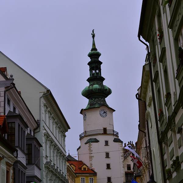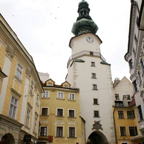 Michalska Brana(密契斯卡门),它又被译为米哈尔门,是布拉提斯拉瓦中世纪围绕老城的五个城门中唯一尚存的城门,是该市最古老的建筑物。这幢白色尖顶高矗的建筑,原为建于十四世纪的哥特式,十六世纪改为文艺复兴式,51米高的巴洛克风格的圆顶钟楼加盖于十八世纪,钟楼顶上还立着密契斯卡天使的雕像,成为旧城及城堡景观不可或缺的画面,登上塔楼可俯视城堡及市景,据说参观塔楼的人,如在外门与内门之间聊天就会倒霉。