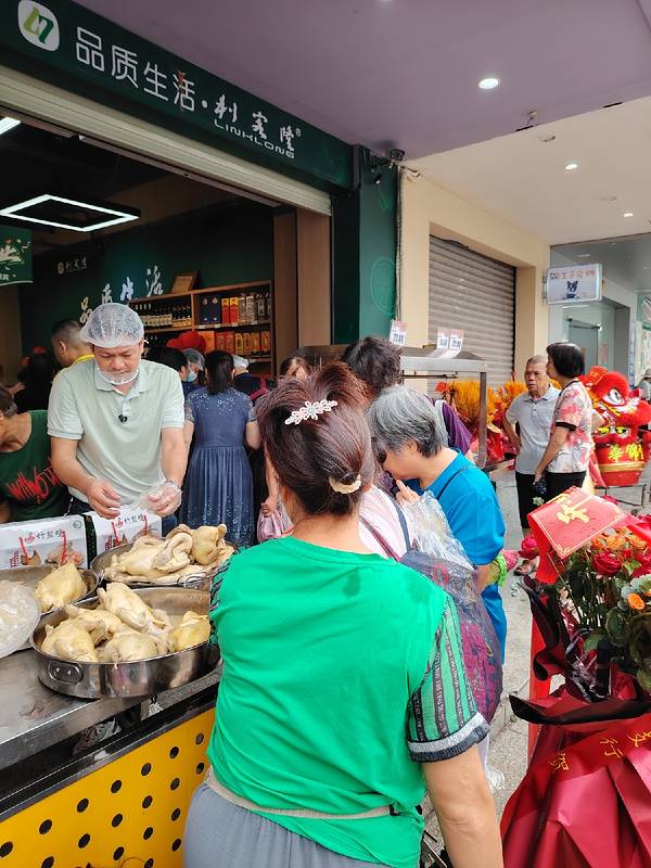 岭头凰竹盐鸡在那里都引人注目。 这不,入驻新开业的利客隆生活超市岭南店,很多市民纷纷围观、试吃、购买。有个阿姨说想后天吃,到时还有没有,竹盐鸡创始人朱世才说,那就不要今天买,这里天天有卖的,这鸡不放添加剂,不能放太久后吃的。