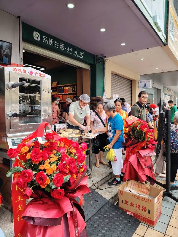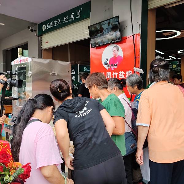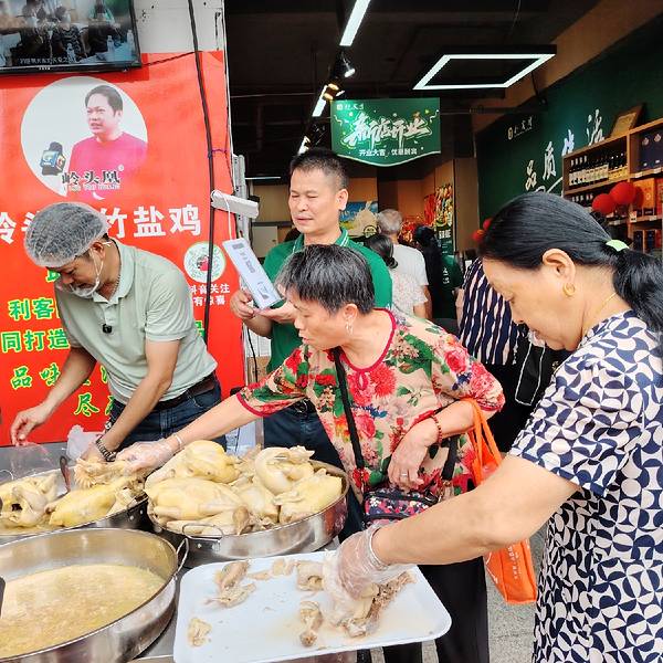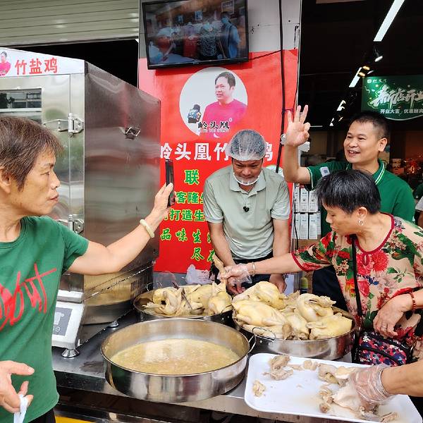 岭头凰竹盐鸡在那里都引人注目。 这不,入驻新开业的利客隆生活超市岭南店,很多市民纷纷围观、试吃、购买。有个阿姨说想后天吃,到时还有没有,竹盐鸡创始人朱世才说,那就不要今天买,这里天天有卖的,这鸡不...