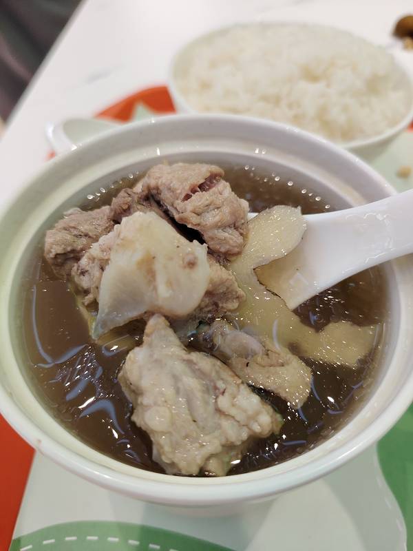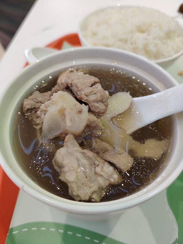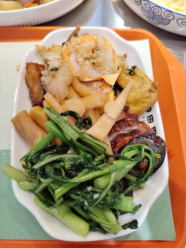 实况拍摄:归田里自选简餐现炒快餐。 这家店好吃的菜很多,看,我要了满满一大碟菜,再加个排骨汤,好满足的。