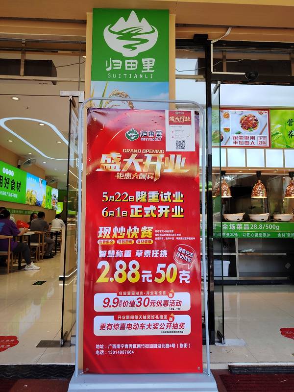 实况拍摄:昨天中午,在南宁园湖北路广西交通学院旁边,发现一家餐厅开业,优惠力度挺大的,叫归田里,现炒快餐,自选称重,好模式!