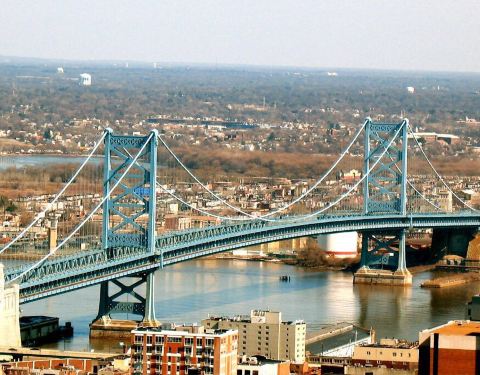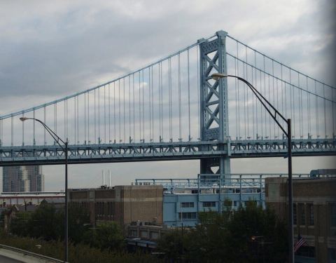 无论什么时候我在这儿,它都塞满了汽车。本·富兰克林大桥上可以看到惊人的费城市中心区域的景色,哪怕你在开车,因为你最终都会堵在车辆洪流中,在高峰期,你需要至少30分钟通过桥。这是一个很好的桥,因为有着这样惊人的风景。你可以从边上步行或骑自行车,这样可能更快。