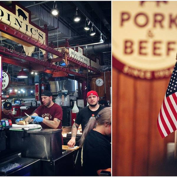已经过了饭点,DINIC'S PORK&BEEF 柜台前仍排起了长队,原来他家是市场中的热门商户。与传统做法不同,他家是用烤过的猪肉和牛肉来烹饪芝士三明治。