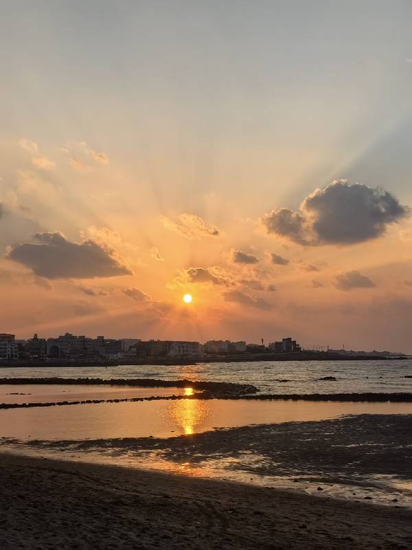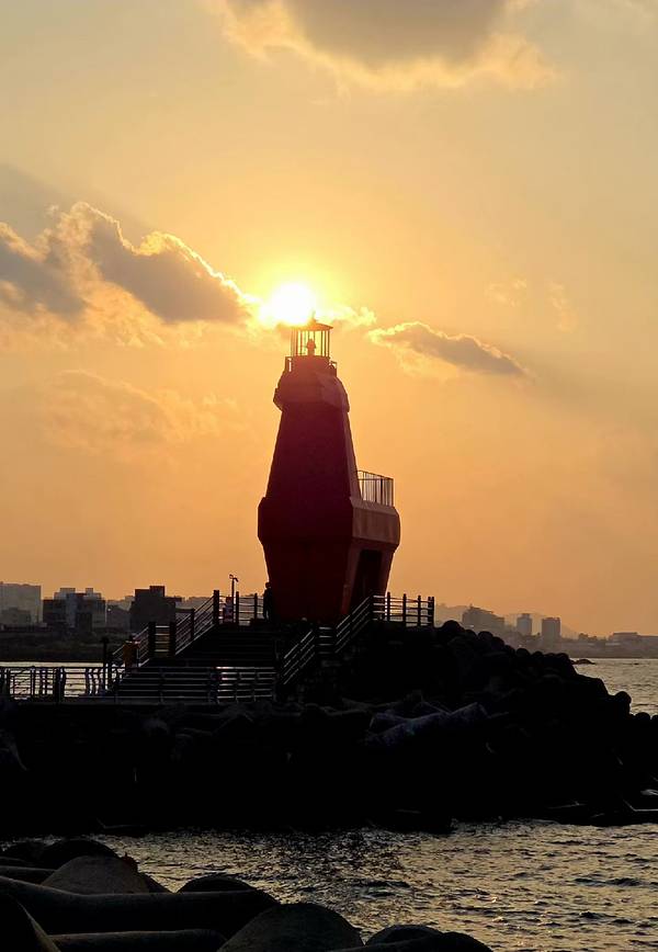 奔赴济州岛山海,只为梨湖海水浴场的红白马灯塔。红白小马造型伫立防波堤,以济州矮脚马为灵感,一红一白守望碧海,是海岸最温柔的坐标。 风携咸湿气息,浪拍礁石作响,沿着堤岸漫步,蓝天、蓝海与灯塔相映成画。黄昏降临,夕阳缓缓沉向海平面,天空晕开橙粉与紫蓝渐变,海面铺满碎金,灯塔被镀上暖柔光晕,剪影与晚霞交织,电影感拉满。 静立岸边,静待最后一缕阳光洒落,看天色慢慢转柔,海浪轻晃着落日余晖。这一刻,时间放缓,烦恼被海风带走,只剩海边微醺的浪漫。贩卖最后一刻海边的微醺阳光,把山海温柔与落日浪漫,妥帖收藏心底。