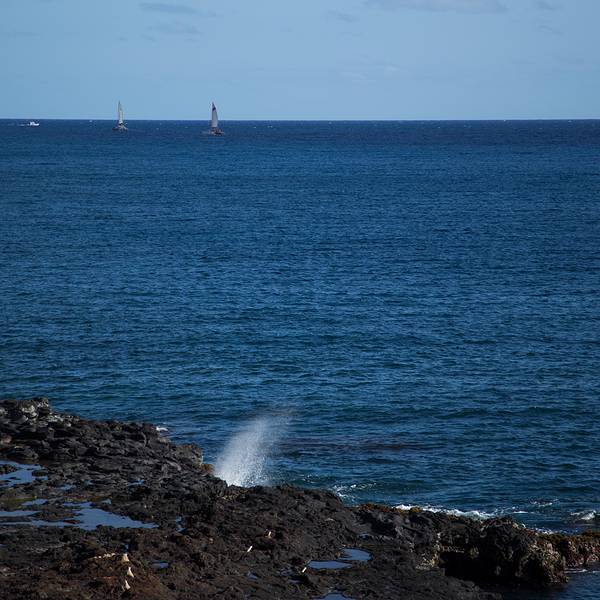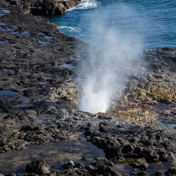 号角喷泉是由波普(Poipu)海浪流入天然熔岩通道,在热潮期喷出的巨大天然喷泉,喷泉时能听到夏...