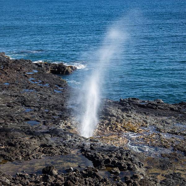 水柱很高,喷射的间隔时间也短,在夕阳下看估计会更美从poipu海滩往西开2英里就到了,只要有海浪,海水就会从礁石的火山熔岩洞里喷射出来,蔚为壮观!水柱很高,喷射的间隔时间也短,在夕阳下看估计会更美。