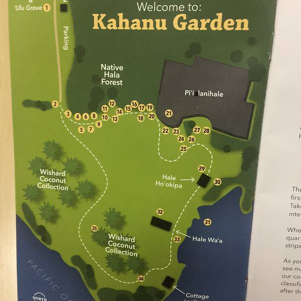 至于这个洞好不好玩,怎么说涅,如果没去过其它火山熔岩洞穴的,还是值得来看看吧。 不过如果来了,就别错过同样在31英里路标处的另一景点吧—— Kahanu Garden Kahanu花园 门票:10美金or20美金?记不太清楚了。如果遇到门口工作人员不在,大门很可能也是敞开的,但是里面停车场入口会有一个“捐款箱”,可以自觉投入门票费用。 这个花园属于National tropical botanical Garden,直译是国家热带植物园,但其实是一个非营利性组织,一共管理着五家公园,四家在夏威夷(除了这家还有三家在Kauai考艾岛),另外一家在佛罗里达。 嗯,是的,这些信息网上没大有。我是怎么知道的?下图↓很多景点入口处都有官方宣传小册子,强烈推荐要拿要看,特别是自由行的,不想太过于走马观花,边看边对照讲解是很不错的。(不过我承认我们就是走马观花的那一种,因为行程有点赶没心思慢慢逛嘛,而且那些这个树那个草的英文单词,不查字典真心看不懂嘿嘿,所以都是拿回来有空再翻翻看的,边看边感慨”哦,原来那颗树叫这个名字啊!啊,原来这个地方还有这种故事啊……) 当然啦,如果你也跟我们一样,至少地图还是可以拿来看看的吧!刚才提到这个花园距离熔岩隧道很近,只要在熔岩隧道门口的那条路上继续前行1英里就到了。不过这段路大部分是未铺装的土路,略有点颠簸,但是即便跑车通过也没任何问题。虽然现在是隶属非营利性组织,但这个花园以前是私人拥有的哦!进门买票的时候跟工作人员攀谈了一下,原来这里曾是他们家的私人产业,后来被上上辈捐给国家了,是的,捐给国家!马上夸了两句表示敬佩啊!不过她倒是耸耸肩说“那都是他们的功劳”。咦?听起来怎么有点不情愿呢?觉悟!注意觉悟!哈哈,也许只是开个玩笑。买完票后继续开车前行,在停车场下车步行即可,这里也有很干净的洗手间。整个游览时间大概半个小时到一个小时差不多。这颗椰子真的好大好大⊙_⊙ 不知道味道怎么样?哈哈香蕉虽然小了点,但香蕉花是非常好吃的食材你造吗?怎么就知道吃啊喂!但这不能怪我,我是不会告诉公园里还有甘蔗、芋头、菜地…… 除了很多珍稀植物(和好吃的植物哈哈),花园内还有夏威夷最大的神殿——Pi'lanihale神殿,约有两个足球场大小,用石头砌成,考古学家认为历史可追溯至公元1200年,且是分阶段建造的。 虽然,在照片里看起来很平淡……哈哈。不过提醒一下,只可远观不可攀爬哦。夏威夷原始部落小草房一间,当然是后来仿制的哈。这边的海岸线看上去倒是非常漂亮,虽然当时阴雨,巨大的海浪看起来还是很震撼的,就是风也好大哦……看似拥抱大海,实则引来乌云,看到黑压压一片吗?是的,下雨了,还好我们已经逛完了,赶紧跑…