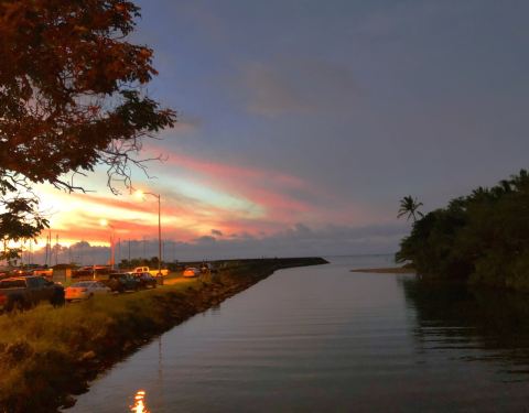 参观玩珍珠港后如果想要寻求一点慰藉心灵的安宁和静谧,特别是参观了庄严肃穆的“亚利桑那”号军舰纪念馆之后可以登上位于海港后方迷雾环绕的科奥劳山脉探访一番,那里有古老夏威夷宇宙和枝蔓丛生的步行小径. HALE'IWA BEACH PARK应该是只有当地人去的地方,人很少.大部分都是当地人在那钓鱼.