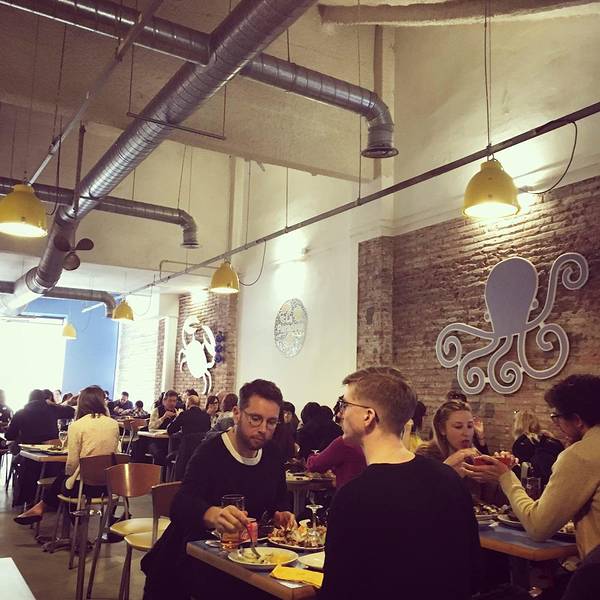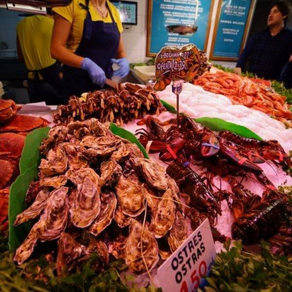 巴塞罗那火车站和圣家堂附近都有它的分店。走进店里你可以看到各种生猛海鲜摆放在冰柜上。这家点餐也很直接,你只需要从冰柜上选出你想要的海鲜材料,再告诉服务生你所选择的烹饪方法(烤、炒、煎、焗等),不多久你的正餐就新鲜出炉啦!
