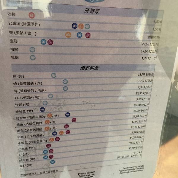 很棒的餐厅!海鲜很新鲜也不贵,正好在圣家堂附近,走路不到10分钟!中午1点才开,所以中午选择这里用餐时间刚刚好,最好提前到,还没开门就有人排队了!随便选自己想吃的海鲜,店员会给你几种烹调建议的,随便怎...