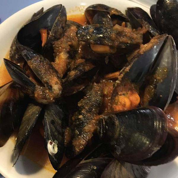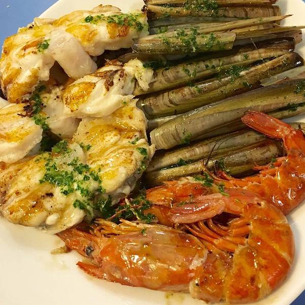这家餐厅主营速食海鲜,做法都是比较简单粗暴的炭烤、油炸等,几乎没什么精加工,其实这样比较适合海鲜,更能保持原味。之前有看到猫途鹰上的评论说他们家的海鲜不新鲜,但我们去的时候龙虾绝对是活的,非常生猛。我们点了炭烤龙虾、青口汤、炸鱿鱼和烤虾,龙虾最为推荐,炭烤也是我觉得龙虾最好的烹饪方法。