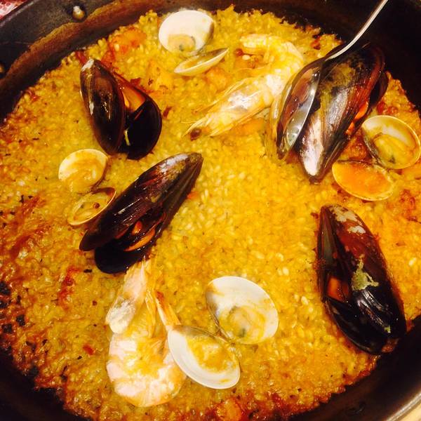 逛完差不多12点半样子,肚子也饿了,当地人午饭时间一般是13点或者14点才开始,我们找了圣家堂附近很有名海鲜连锁店La Paradeta,这个是很多人推荐的,运气好,刚到就开始排队了,后续来了很多人排在我们后面。