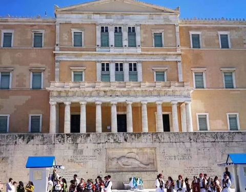 大厦正前方的墙上刻有古代穿盔甲的士兵图像,作为众多无名士兵的表徽大厦正前方的墙上刻有古代穿盔甲的士兵图像,作为众多无名士兵的表徽。国会大厦广场有穿着传统服饰的卫兵长期驻守,并有卫兵交接的仪式。