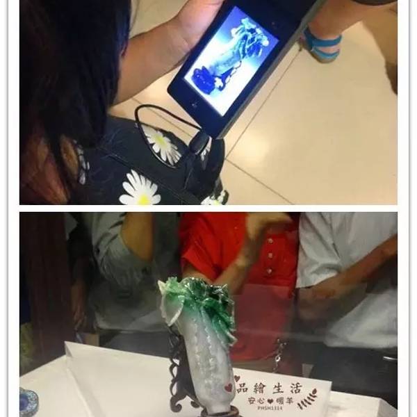 其实里面看看并不如外面看的清楚,外面有个屏幕,从各个角度,各个方向剖析大白菜的构造和样子,里面只是远远一眼,而且看的人好多好多!