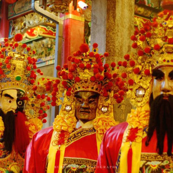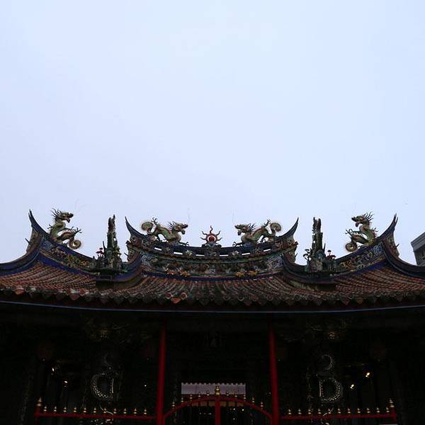 离开熙攘的万华龙山寺来到清水祖师庙,人群少了许多,天色暗了许多,更显出祖师庙的清冷,像极了《艋胛》里GETA大佬被砍死时的萧瑟。在祖师庙的正门口,又看到了比龙山寺更加繁复的屋顶,这次竟然出现了人的形态...