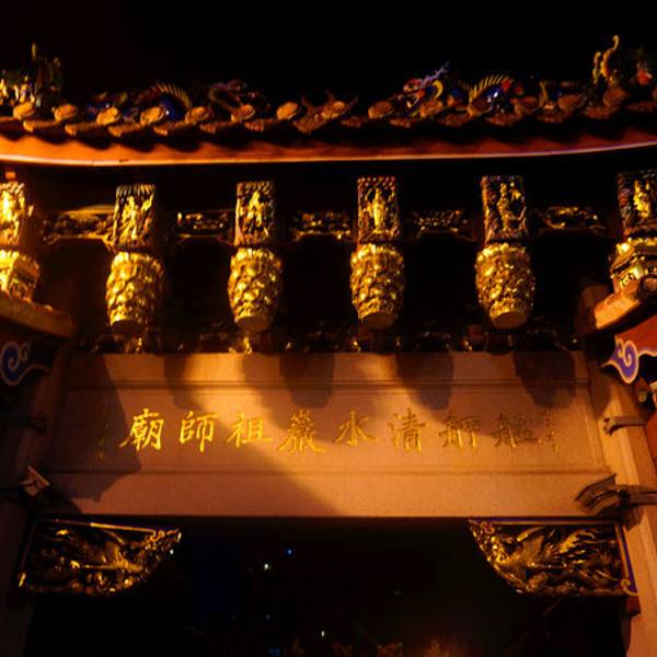 艋舺清水岩祖师庙,与艋舺龙山寺、大龙峒保安宫合称为台北市的三大庙门艋舺清水岩祖师庙,与艋舺龙山寺、大龙峒保安宫合称为台北市的三大庙门。电影《艋舺》里的“庙口”指的就是这里。——台词:“这就是庙口,我们的地盘。”