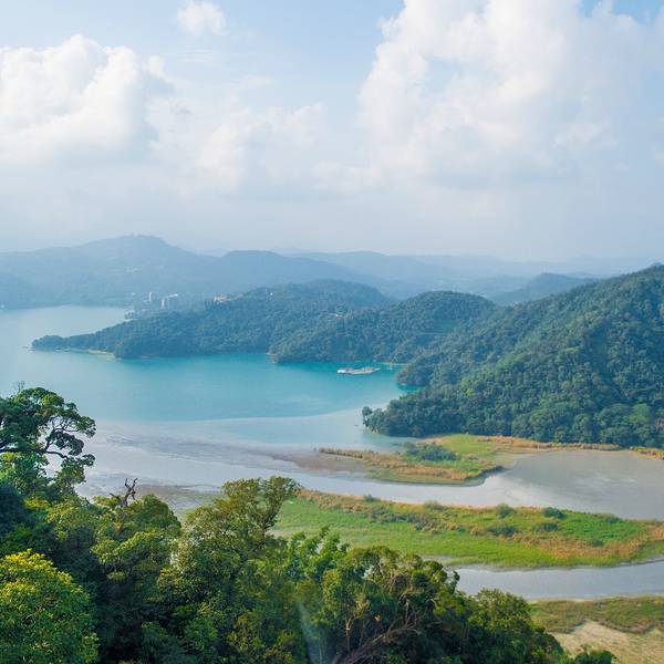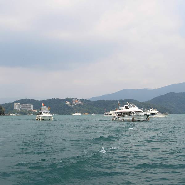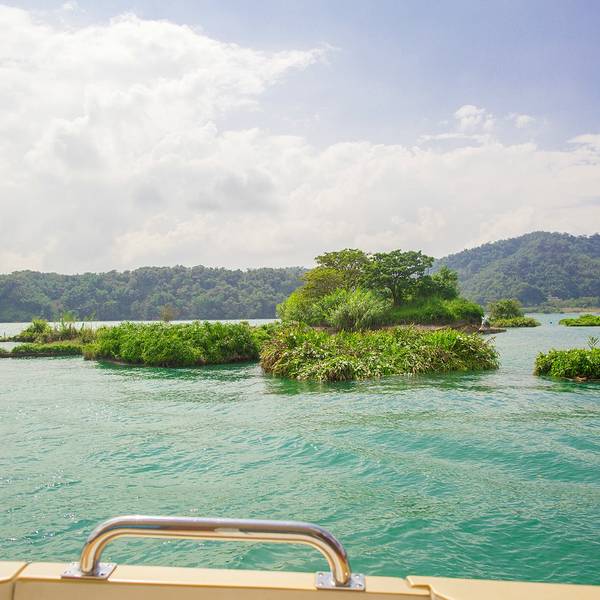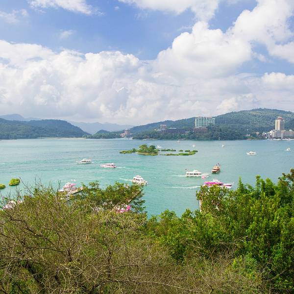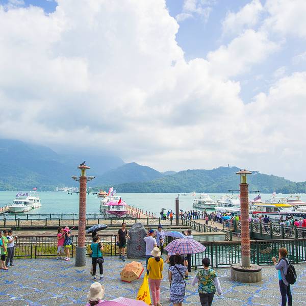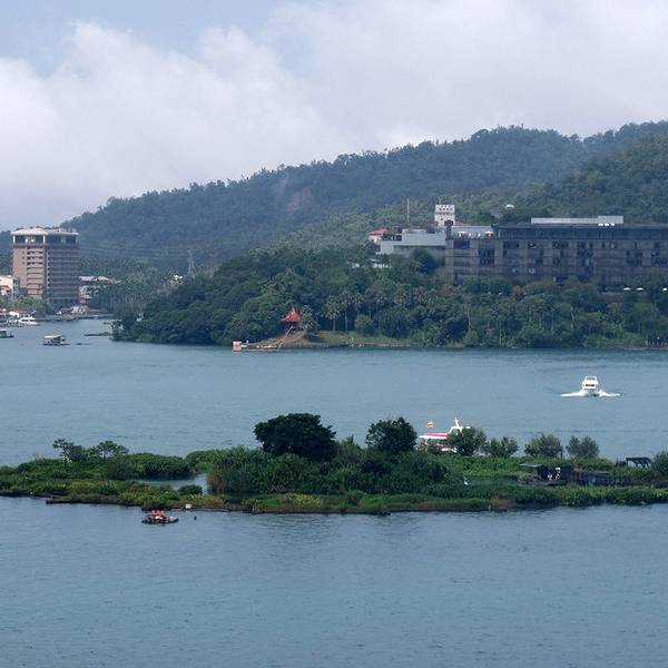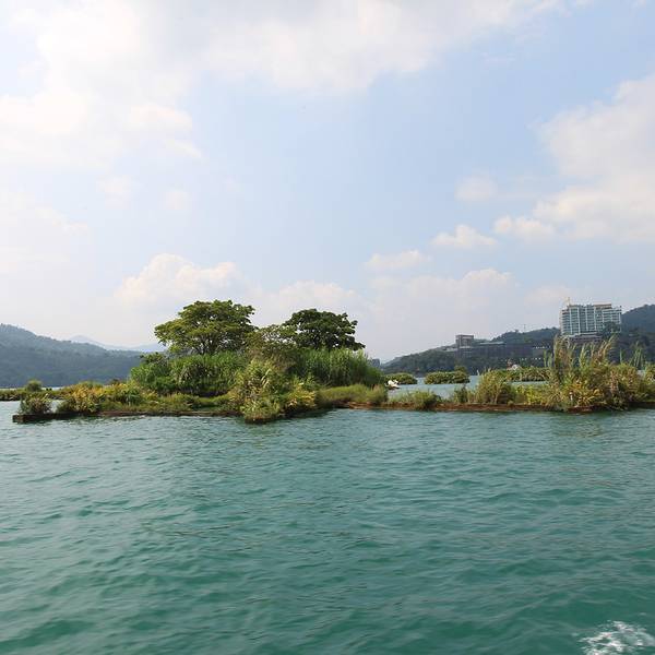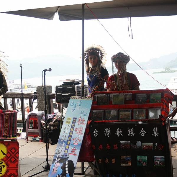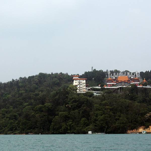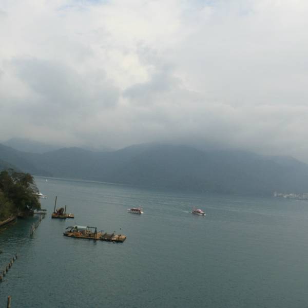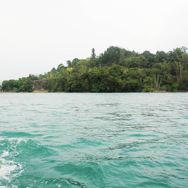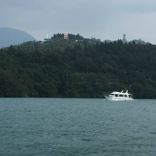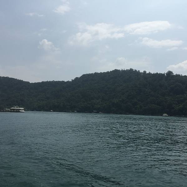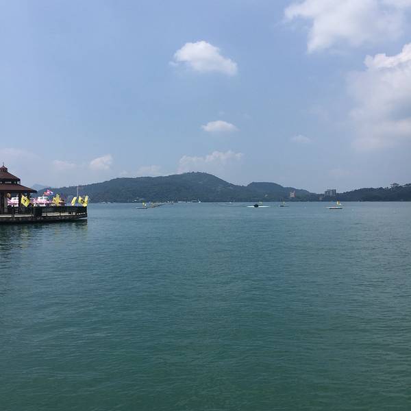 日月潭是台湾最大的淡水湖,湖边建筑景色一般就是个湖,湖中心有一个岛,岛上有一个小山,山脚下有阿婆茶叶蛋,用香菇跟灵芝做的,不太咸,13台币一个。山上也没什么景色,也是湖。日月潭是被湖中小道分成日潭月潭两部分。游船要排队等候,开船的是年轻的船长,也会推销茶叶跟酒之类的,基本都是当地人。岸边有日月潭附近的原住民歌手在推销自己的唱片,其实真的可以买一些,挺好听的。