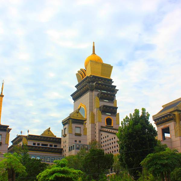 周围都是郁郁葱葱的山脉,特别是寺门前有很大一片开阔地,种满了高高的槟榔树,非常好看中台禅寺的外观不像寺庙,没有红色的围墙和黄色的建筑,而是高大的大理石建筑加鎏金莲花顶,非常壮观!周围都是郁郁葱葱的山脉,特别是寺门前有很大一片开阔地,种满了高高的槟榔树,非常好看!