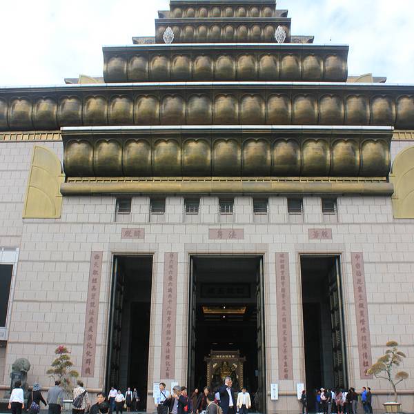 实用 景区没有门票,旁边就是中台博物馆。一进门的地方有尊笑口弥勒佛,大腹便便,笑口常开,看了心情就好中台禅寺的年份不是很久远,1994年建的,迄今也就二十年光景,但人家发展迅速,跟个连锁企业似的,现在遍布台湾省八十多家分院了。建筑风格完全颠覆了传统寺庙的模式,融贯中西,规模壮观,是新式美学与现代科技...中台禅寺的年份不是很久远,1994年建的,迄今也就二十年光景,但人家发展迅速,跟个连锁企业似的,现在遍布台湾省八十多家分院了。建筑风格完全颠覆了传统寺庙的模式,融贯中西,规模壮观,是新式美学与现代科技的结合品,曾经多次登顶台湾最奇葩建筑论坛,还得过不少建筑方面的权威奖项,像2002年“台湾建筑奖”,2003年“国际灯光设计卓越奖”。它最奇葩的地方还在于,明明是个佛寺,里面完全没有可以点香的地方,景区也有规定不准游客跪拜佛像,心诚就好,心诚到投个香油钱就更好,真是大开眼界。而且除了主殿,其它地方都允许拍照。一进门的地方有尊笑口弥勒佛,大腹便便,笑口常开,看了心情就好。大厅里支撑了屋顶的四根大柱子都雕刻成了四大金刚的模样,既实用,又美观。同源桥是杭州灵隐寺送来的见面礼,一座金色的小拱桥。景区没有门票,旁边就是中台博物馆。 展开