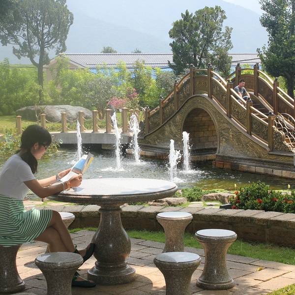 【游览印象】第一,中台禅寺前面有一个小西湖,风光非常好,适合拍照留念,湖上有座同源桥,是杭州的灵隐寺赠送,寓意两寺同法同源,共同为两岸人民祈福;第二,中台禅寺的外观气势宏伟,内部也算金碧辉煌,四大天王殿内四大天王的风调、雨顺、国泰、民安的法器,大雄宝殿内印度红花岗岩雕刻而成的释迦摩尼像,都令人印象深刻;第三,中台禅寺非常现代化,有阅览室,有计算机室,非常出乎意料。