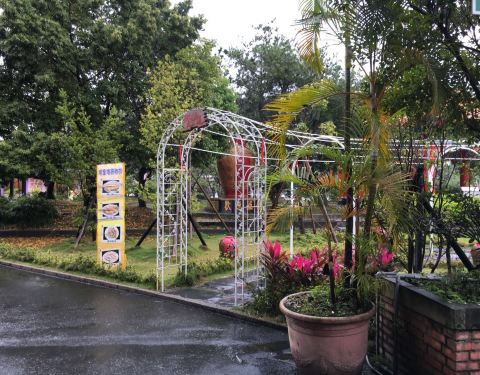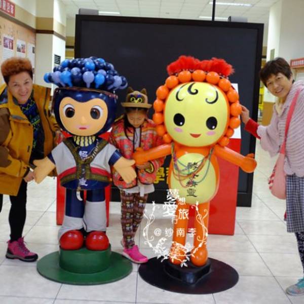 跟可爱的吉祥物一起拍照。在埔里酒厂,