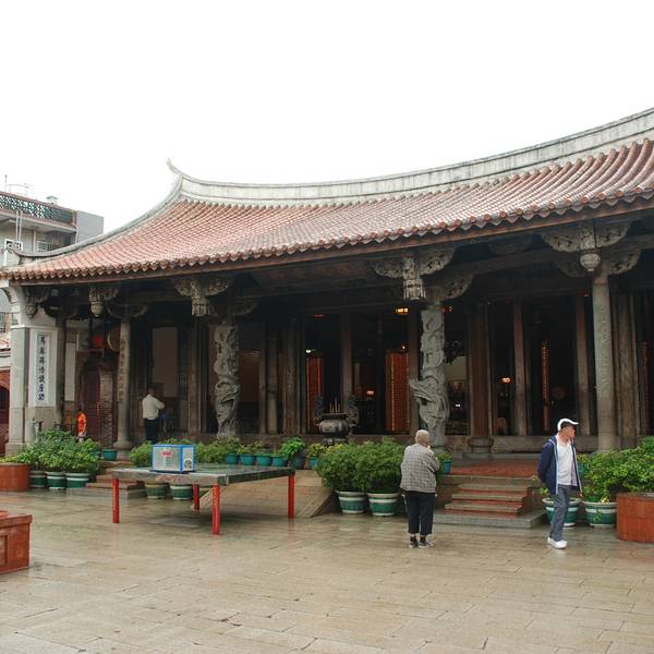 实用 寺庙里的人很少,大多是年纪很大的阿伯阿嬷来拜拜,虽然是一个免费对外开放的景点,但整个景区依然非常规整从早上5点到晚上9点半这里一直免费开放,鹿港龙山寺是彰化县鹿港镇内的一座庙宇。于1831年修建原本的狭小庙寺而成,主要祭祀观世音菩萨。鹿港龙山寺是台湾著名龙山寺中保存最为完整的建筑,属一级古迹。最早在17...从早上5点到晚上9点半这里一直免费开放,鹿港龙山寺是彰化县鹿港镇内的一座庙宇。于1831年修建原本的狭小庙寺而成,主要祭祀观世音菩萨。鹿港龙山寺是台湾著名龙山寺中保存最为完整的建筑,属一级古迹。最早在17世纪时建立,在1786年迁到现在的位置,并重建许多次。龙山寺是一个大型建筑物,被认为是现在在台湾保存最完整的清朝建筑物。整个庙宇最重要的是其建筑和雕刻。这里交通算是挺方便,搭乘台铁到彰化站下车,然后转乘台湾好行鹿港线,到鹿港南区游客中心站下车,步行可达。以为是清晨,寺庙里的人很少,大多是年纪很大的阿伯阿嬷来拜拜,虽然是一个免费对外开放的景点,但整个景区依然非常规整,非常有古早味,寺庙的庭院里,有很多百年古木,遒劲的枝干上有嫩绿的树叶,鹿港龙山寺规模宏伟,坐向为东朝西,格局十分方正,山门为三进两廊九开间纵深式建筑。鹿港龙山寺的建筑共分三进,由外而内为山门、中门、戏台、拜亭、正殿、后殿及左右厢廊。前殿,包括三川殿及龙虎门,它共辟五门,所以又称为“五门殿”。中门左右边各有“抱鼓石”。整体外貌简洁明朗,结构朴实。在寺庙遇到在下围棋的当地老伯,他告诉我们,其实,鹿港龙山寺原本建在大有街一带,到了1786年,才迁建于台湾彰化县鹿港镇龙山里金门街,直到1831年,鹿港龙山寺才具有了今日所见的格局和规模。鹿港龙山寺的山门建筑别具一格,重檐歇山顶,共有12根立柱做支撑,三进两廊九开间纵深式建筑,华丽壮观且内外通透。前殿后相连一座戏亭,又称为戏台。这种殿堂与戏台相连的建筑方式使这组建筑各具功能又富于变化,在佛寺建筑中也是很少见的。戏台的藻井称为“八卦顶”,没有用一根铁钉,只以精巧的木雕,配上精密设计的榫头而成,16组斗拱搭叠出五层,集向中心。在鹿港的龙山寺,连厕所都可以建的如此有味道,红砖圆洞门,给了人很多莫名的艺术馆,好像这些场景只应在影像中出现。还是有很多人来敬香,希望这里能得到更好的保护。 展开