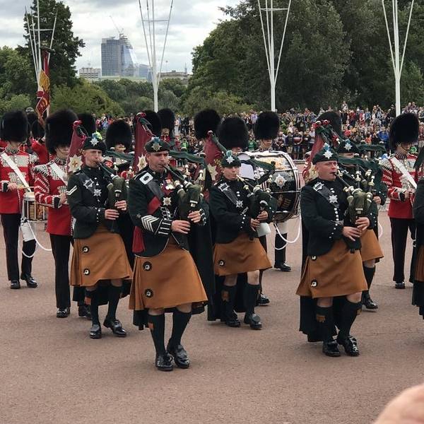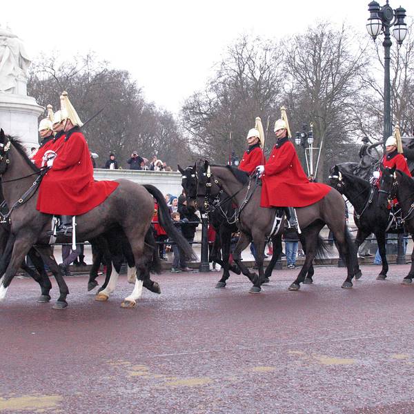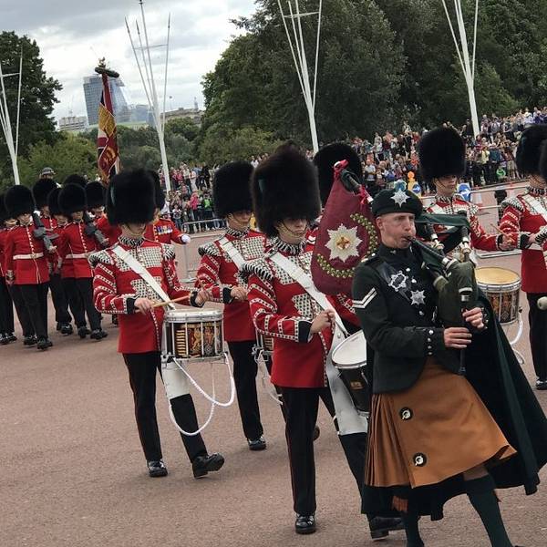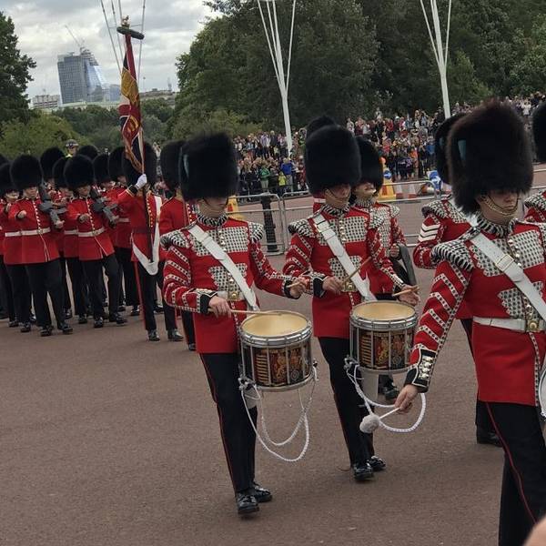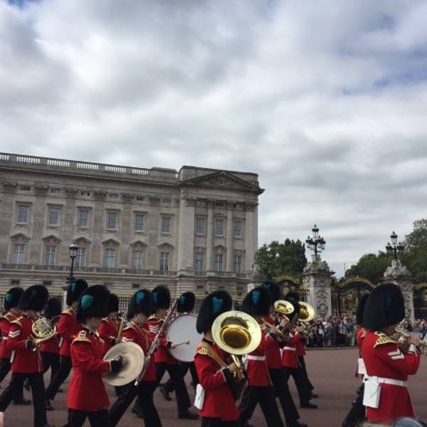 英国女王办公及居住之所,在宫前广场观看皇家卫队换岗仪式。