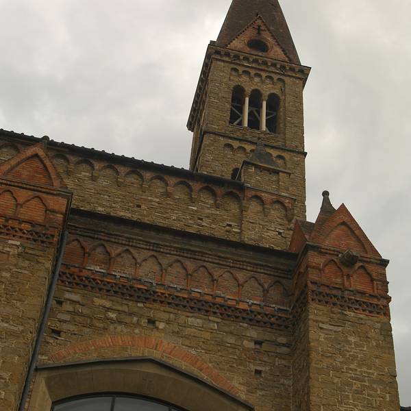 佛罗伦萨车站对面的新圣母玛利亚教堂(Santa Maria Novella),外表看起来比较不起眼,好像土黄色的砖块砌成的城堡,建于1279至1357年左右,但是教堂的正面在1470年又由建筑师阿尔贝第整修过。虽然它看起来仍旧是不起眼。教堂的内部哥德式辉煌的湿壁画是最吸引人的地方,尤其是马萨其欧的圣三位一体的壁画,是非常有名的教堂艺术之一。教堂里面末端主祭坛类似殿堂的设计很值得细看;另外,它的绿色回廊、西班牙礼拜堂(目前是博物馆)、史特罗济礼拜堂等都是参观的重点。