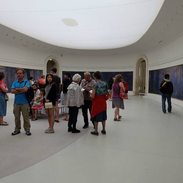 馆内人不算多,很安静,好多人坐在长椅上,细细品味画作的每一个细节。因莫奈的《睡莲》而闻名因莫奈的《睡莲》而闻名。橘园并不大,都是长幅画作。馆内人不算多,很安静,好多人坐在长椅上,细细品味画作的每一个细节。看到老师带着一群学生,细细讲解,虽然听不懂他们说什么。