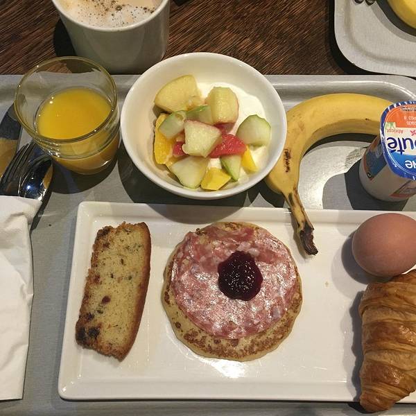 巴黎八点半才日出,我们七点多起来吃早餐的时候天还黑乎乎的。欧洲的自助早餐...首先要说的是时差问题。昨晚睡到半夜已经肚子饿了,看一下手机,才两点半ε=ε=ε=(#>д<)ノ