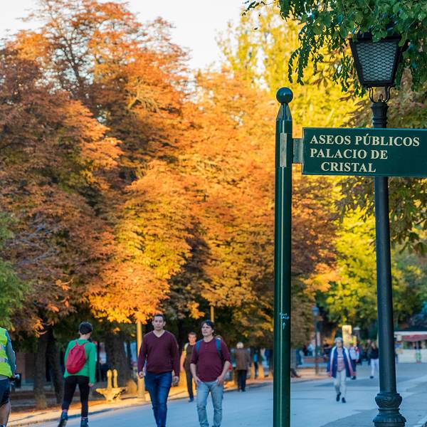 10月公园内铺天盖地的金色秋景,处处都可以拍成油画!一片开阔的水池后,是丽池公园人气最旺的水晶宫, 阳光透过玻璃折射出漂亮的色彩,整个室内笼罩在梦幻氛围里,超级美!赶在日落前,到公园的人造湖,人们在最后的阳光里舞浆泛舟。